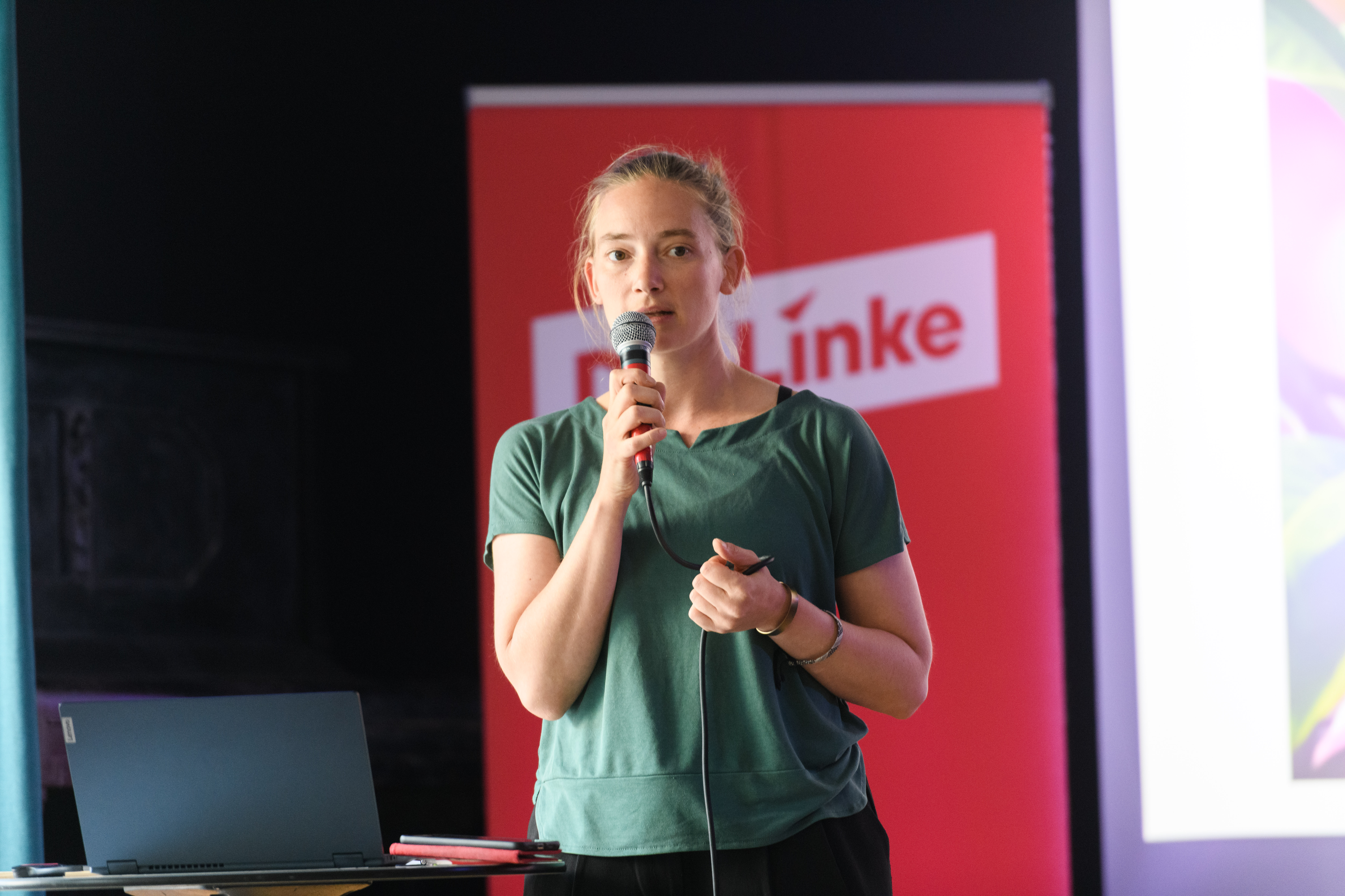 Eine, die aus erster Hand aus Berlin berichten kann, ist Katalin Gennburg. Die 41-Jährige aus dem Wahlkreis Berlin-Marzahn – Hellersdorf ist seit diesem Jahr Abgeordnete im Bundestag, in den sie über die Berliner Landesliste einzog. Zuvor war sie von 2016 bis 2025 Mitglied des Abgeordnetenhauses von Berlin. Bei der Aktionskonferenz im Stadtteilzentrum Wesertor hielt sie einen Vortrag über feministische Stadtpolitik.