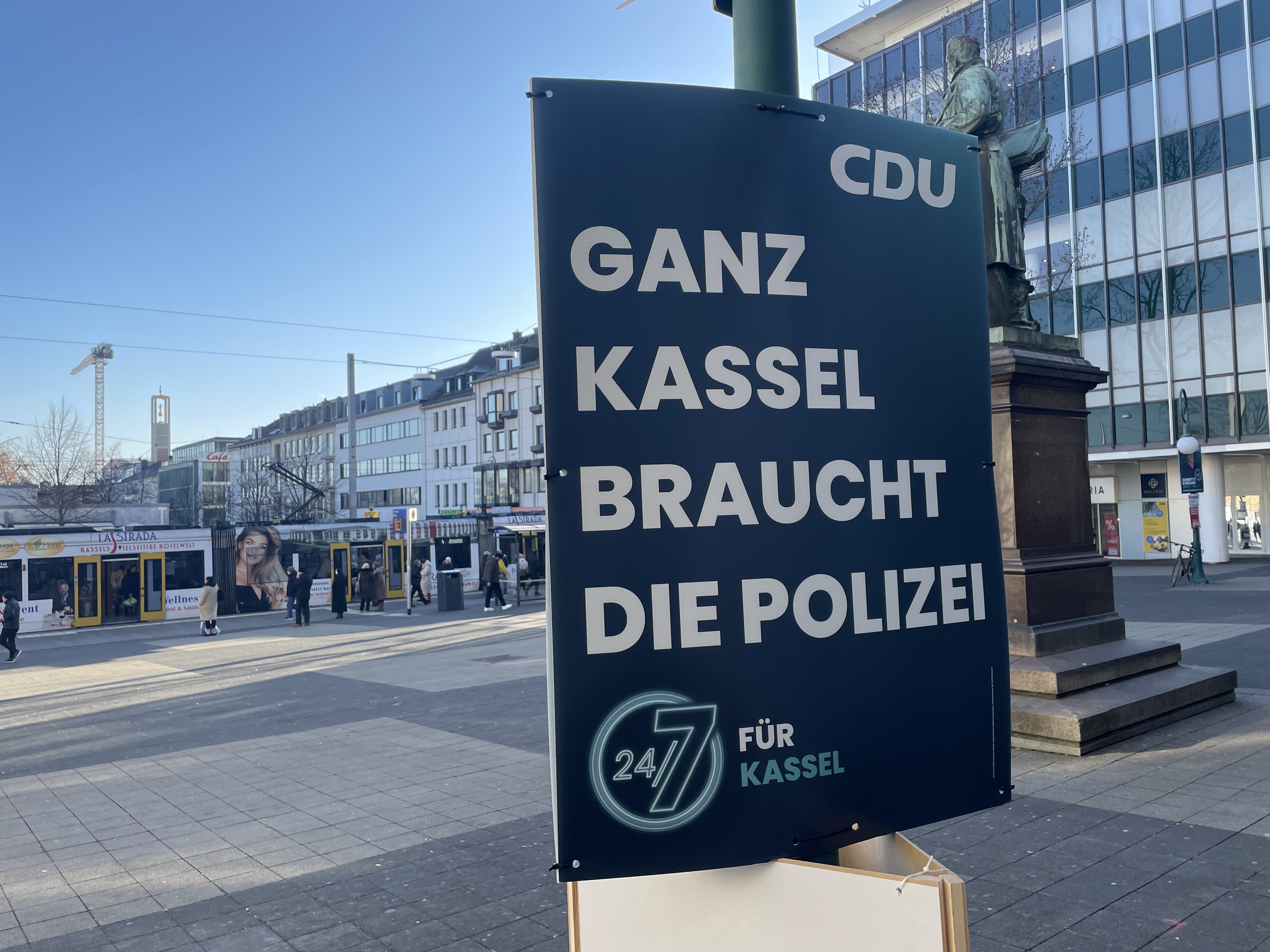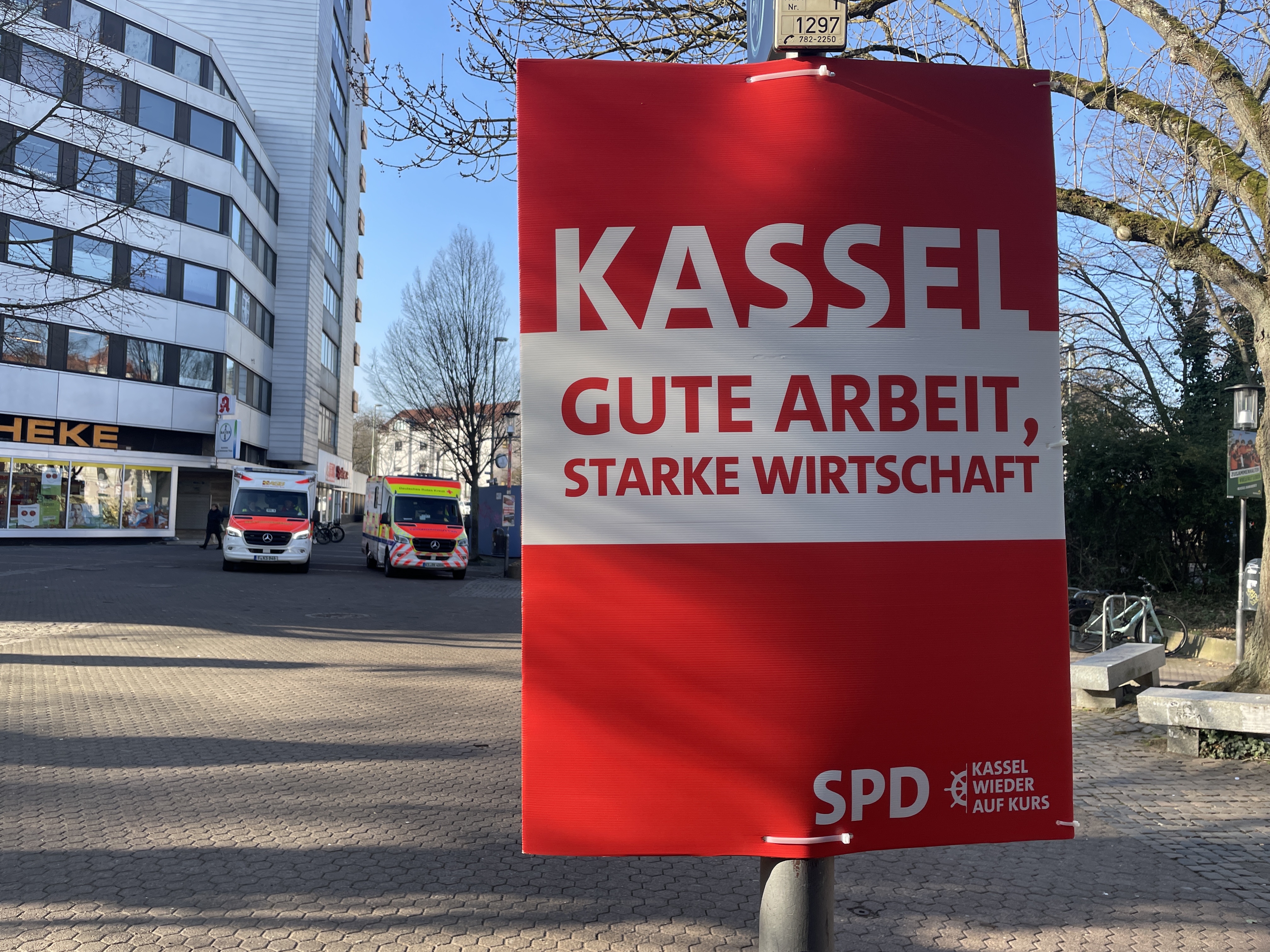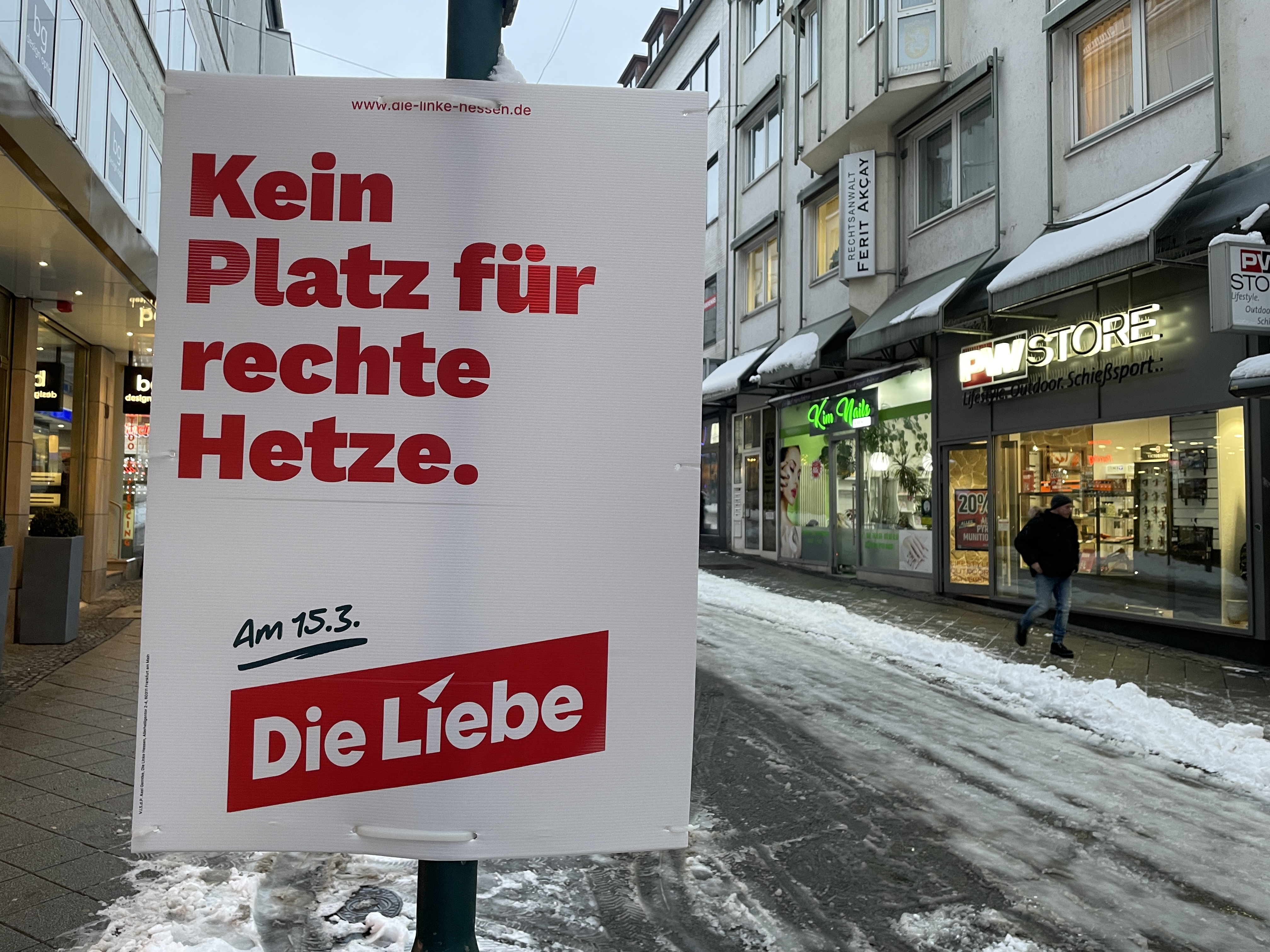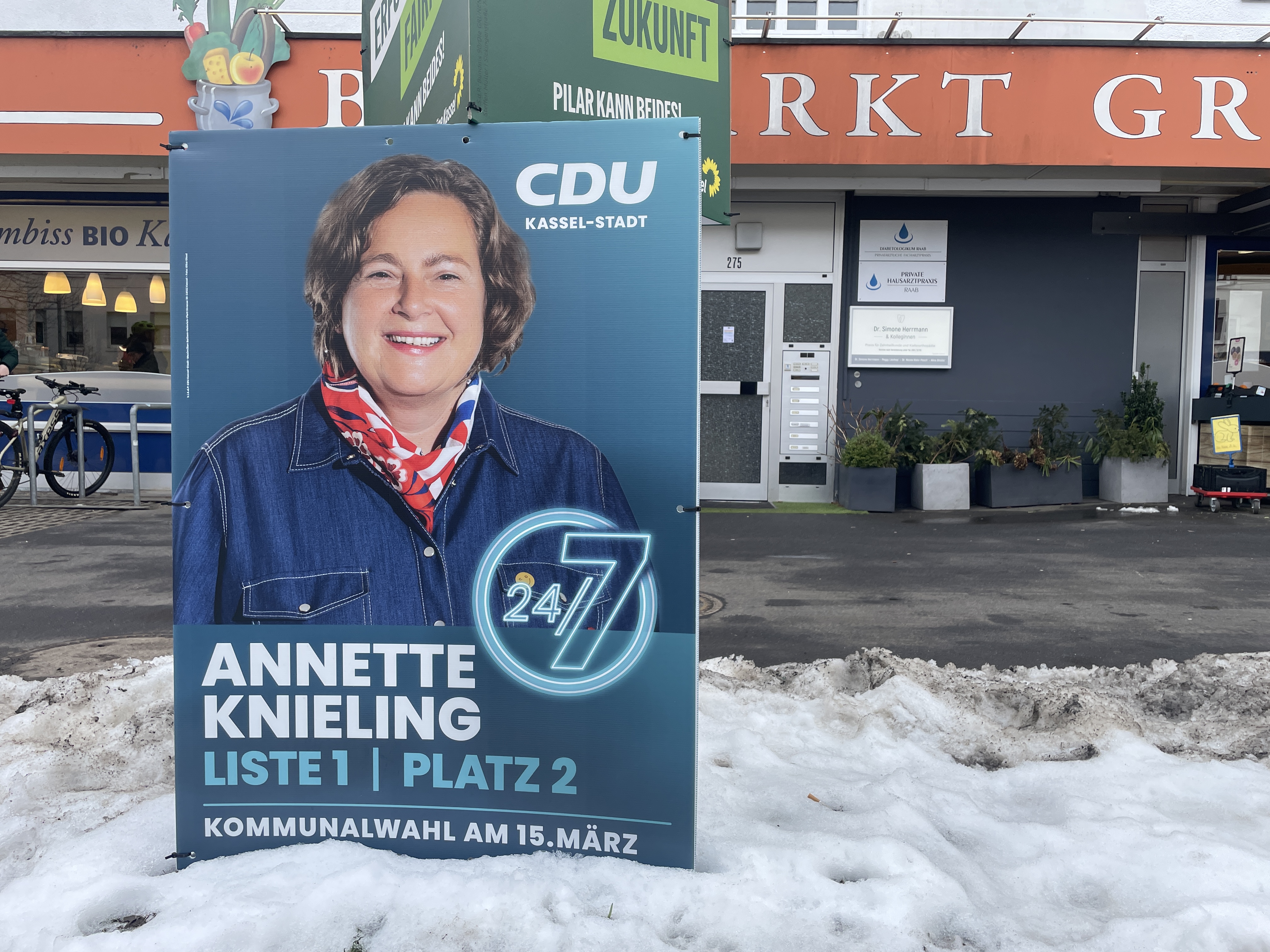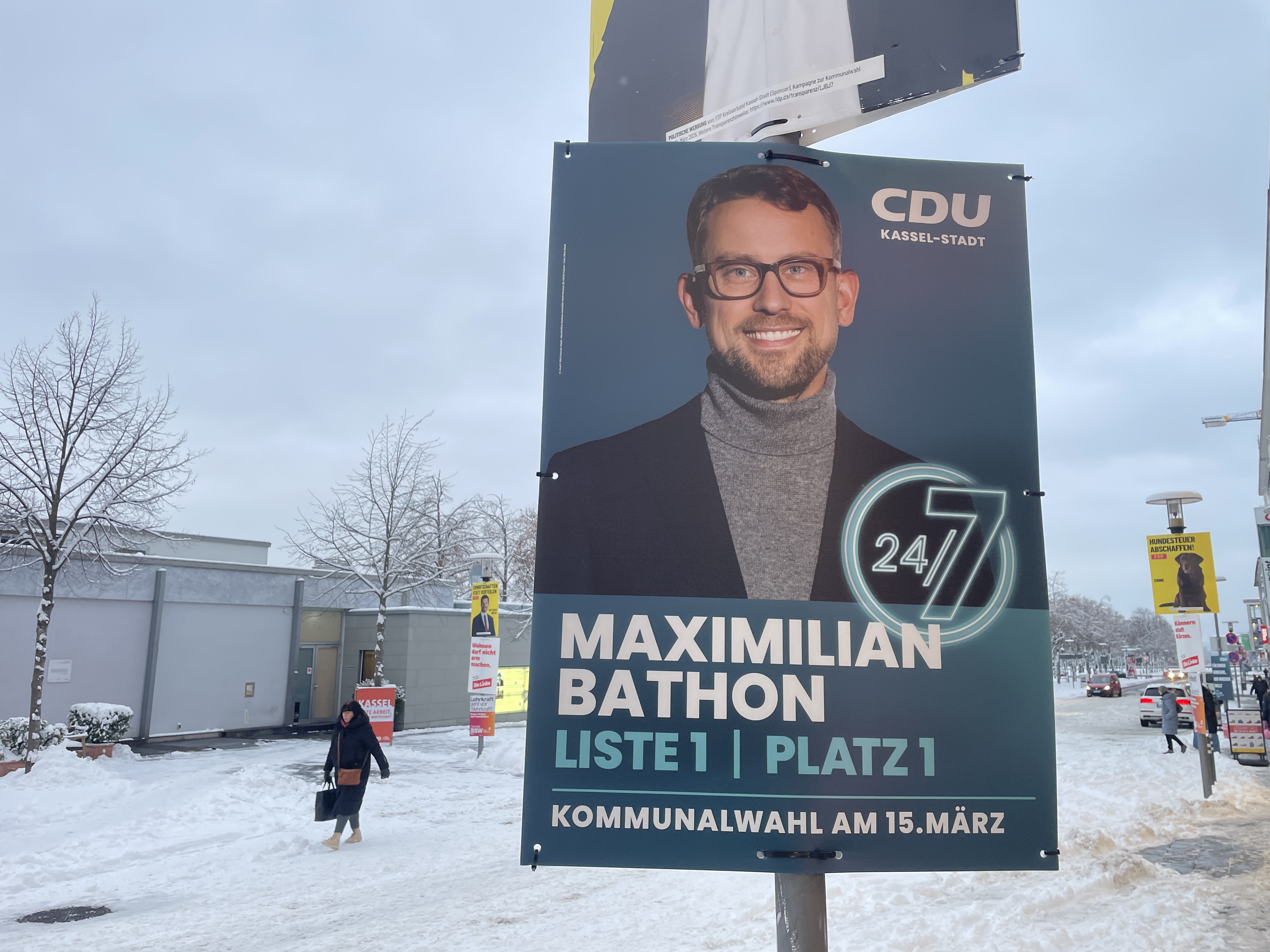 Schon vor dem Jahreswechsel waren in Kassel an vereinzelten Stellen Plakate zu sehen, die in Zusammenhang mit der Kommunalwahl stehen. So wünschten CDU und SPD den Bürgern einen guten Rutsch ins neue Jahr. Auch FDP-Kämmerer Matthias Nölke schickte von Litfaßsäulen seine Weihnachtsgrüße. Die Linke nutzte die Gelegenheit, um auf ihre Sozialsprechstunde und Mietwucher-App aufmerksam zu machen.
