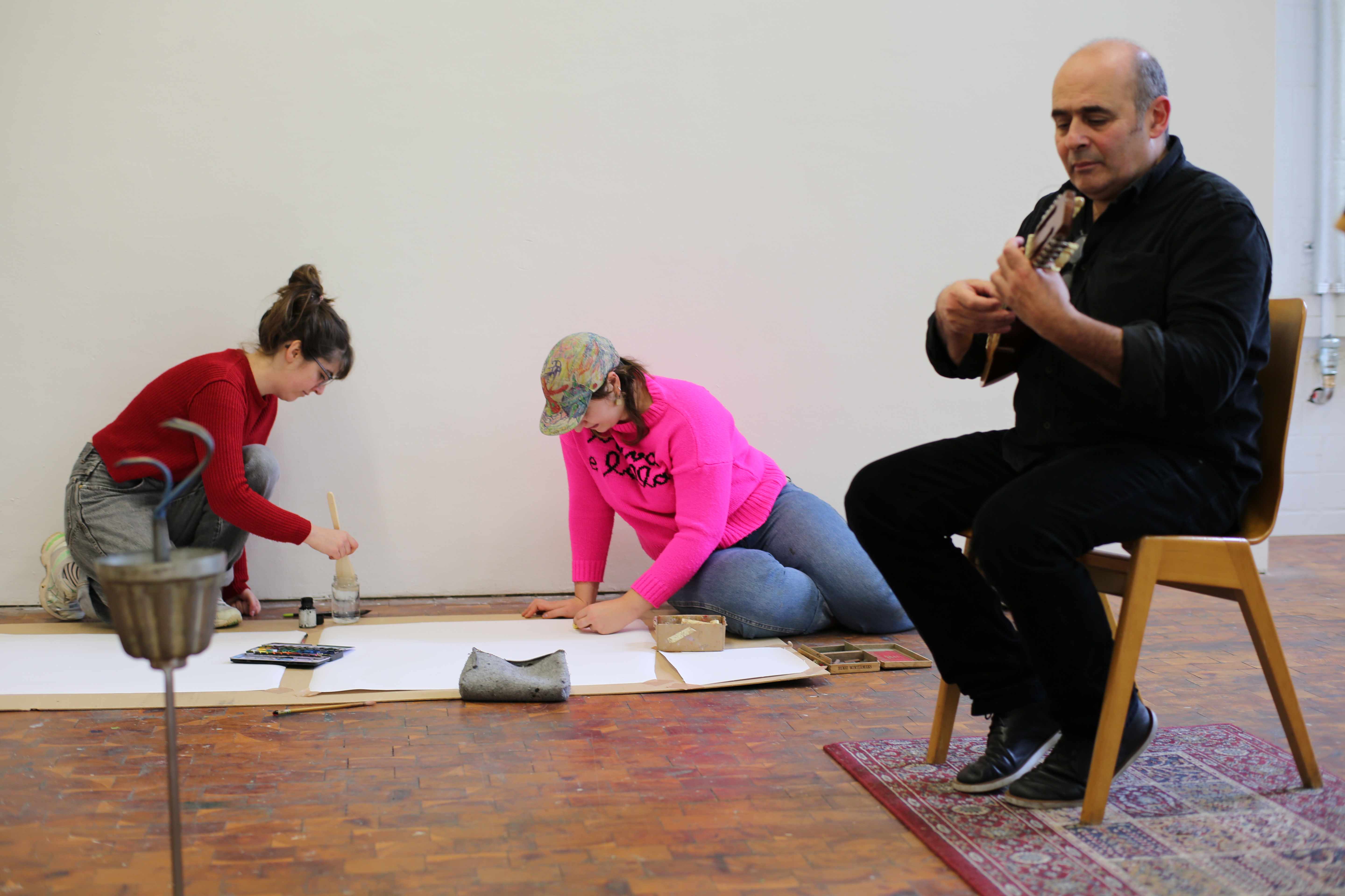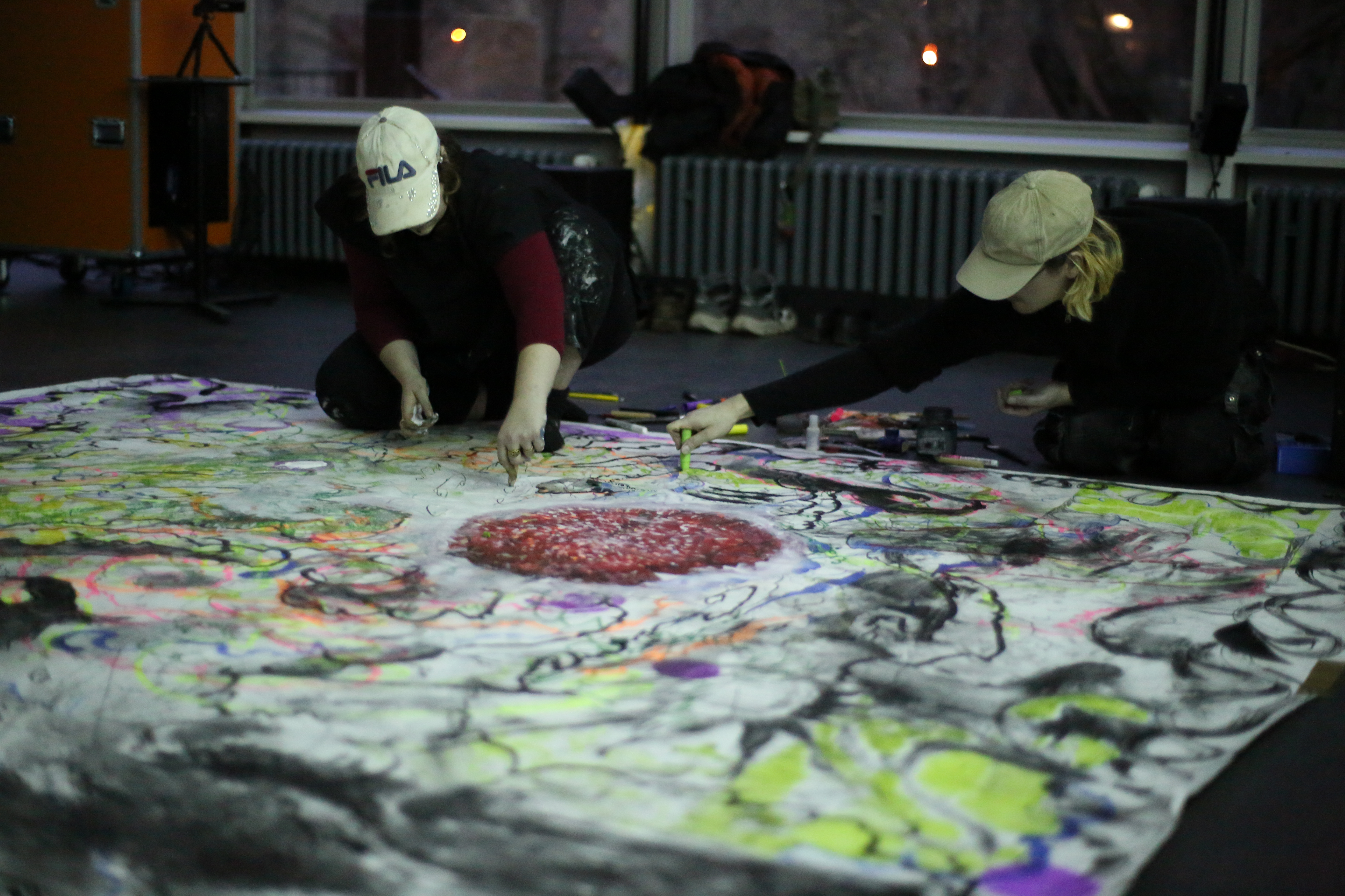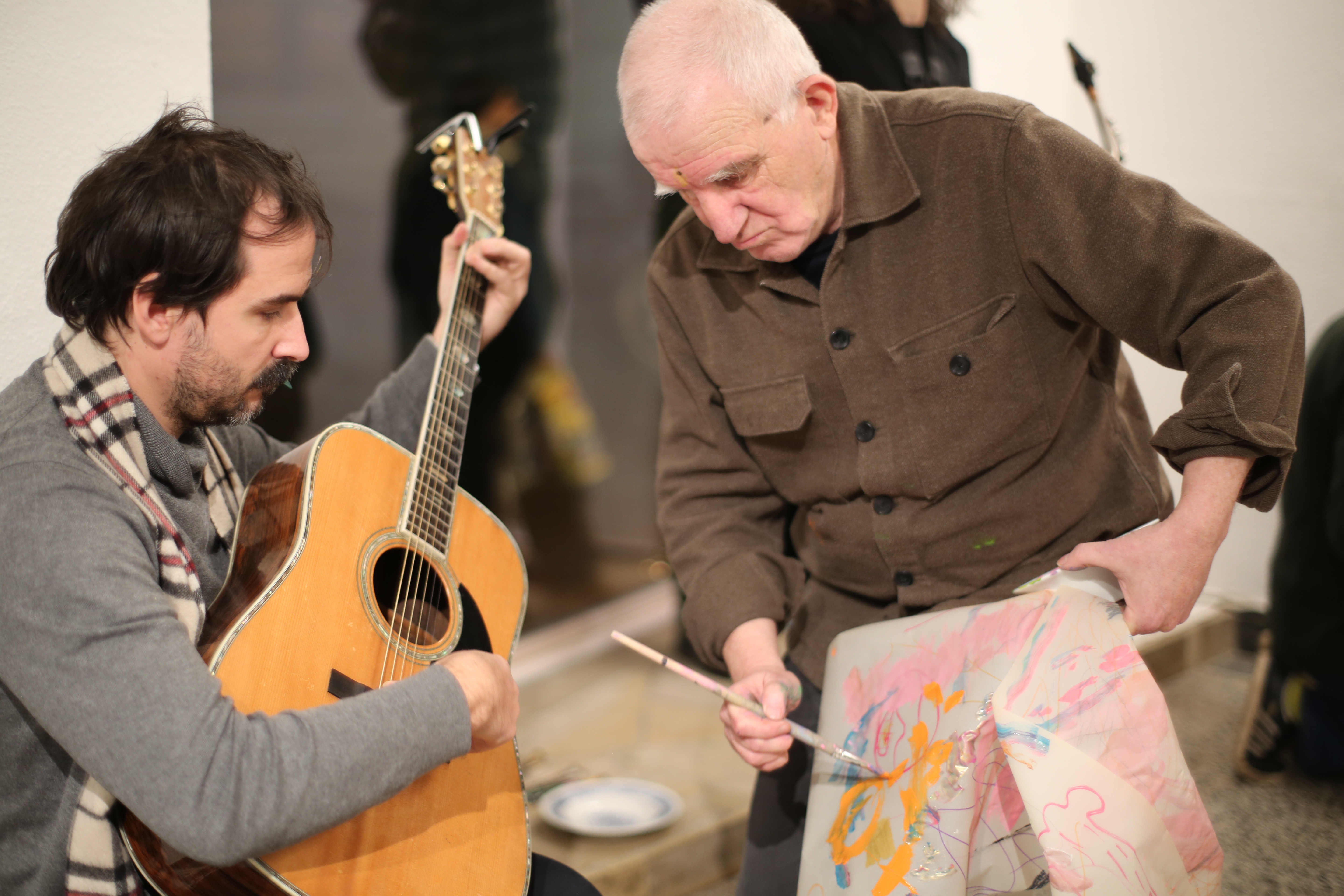 Ich finde, dass es alles andere als gewöhnlich gewesen ist. Wann sieht man schon mal wie wild auf ein Blatt Papier malende Menschen, die quasi von verrückten Klängen angetrieben werden? Wie kommt man darauf?