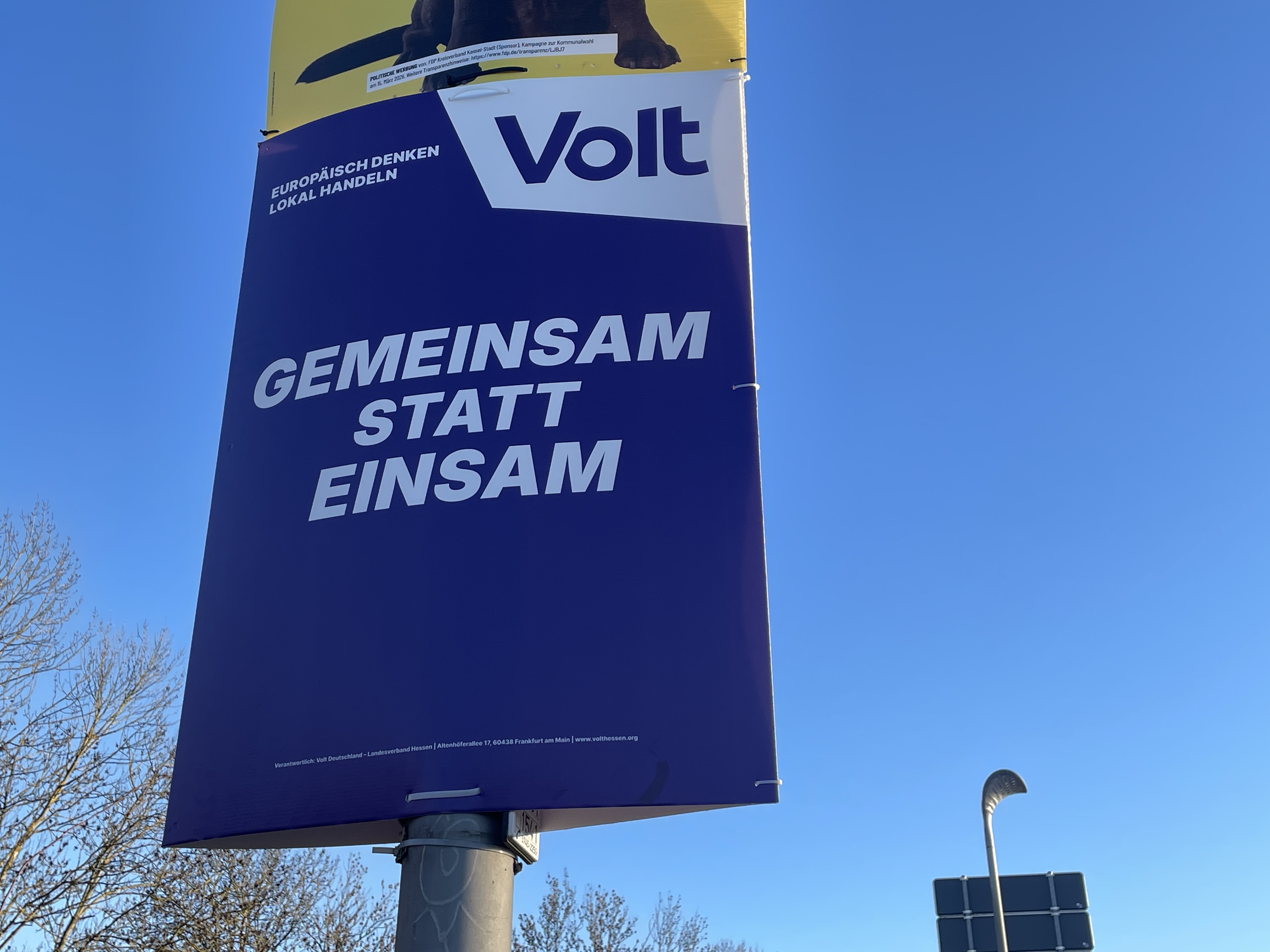 Am Montag, 19. Januar 2026, fielen mir dann zum ersten Mal die gelben Plakate der FDP an der Friedrich-Ebert-Straße auf. Wie die HNA in ihrer Ausgabe vom Dienstag, 20. Januar 2026, schrieb, hat die FDP damit gegen die Kasseler Plakatordnung verstoßen. So begann der Zeitraum für die Wahlplakatierung in Kassel für alle Listen erst am 20. Januar 2026 um 0 Uhr, wie das Ordnungsamt auf HNA-Anfrage mitteilte. Der FDP sei keine Erlaubnis für die frühzeitige Plakatierung erteilt worden. Rund 30 FDP-Plakate in exponierter Lage seien bereits abgehängt, weitere Sanktionsmöglichkeiten würden geprüft, so ein Vertreter des Ordnungsamts gegenüber der HNA.